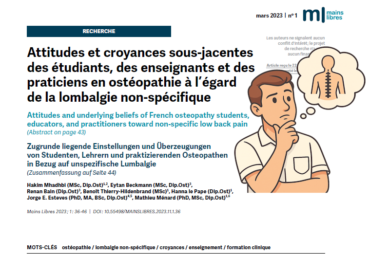 Nous sommes fiers d’annoncer la publication d’une étude scientifique à laquelle a contribué l’un de nos enseignants, Matthieu Gonzalès-Bandrès, parue dans la revue internationale Chiropractic & Manual Therapies (2025). Cette revue de littérature menée par Thomas Delion et al. dresse un état des lieux des recherches existantes sur le rôle des thérapies manuelles, dont l’ostéopathie, dans la prise en charge des traumatismes crâniens légers à modérés (TBI).